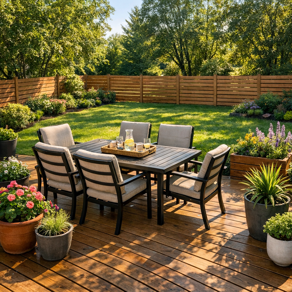 Together we choose fence styles, deck layouts, railings, and flower‑bed shapes, along with suitable materials and finishes.